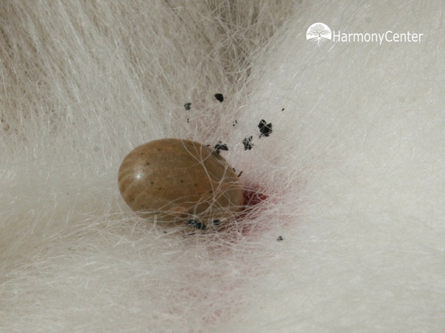 Uit deze eitjes komen jonge teken, larven genoemd. Deze laven – herkenbaar aan 6 pootjes – gaan op zoek naar bloed. Als de larve voldoende voeding heeft, laat hij los en verveld hij zich.
