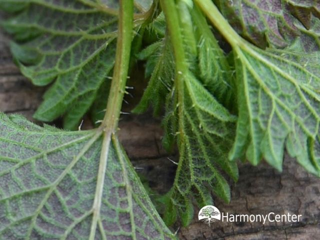 Waar je dan op moet letten, is dat er kleine haartjes met weerhaakjes op de bladeren en stengels zitten. Als je een beweging maakt tegen die haartje in, breken ze af en komen de stoffen vrij die ervoor zorgen dat je een brandend pijnlijk gevoel krijgt.