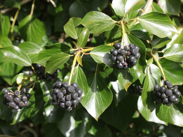 En als de bloemen verdwijnen, vormen er zich kleine zwarte besjes in de klimop planten. Deze zwarte bessen, die voor mensen heel giftig zijn, zijn een welkome voedselbron voor vogels in de winter. Ook weer juist een periode (de winter) waar ander voedsel schaars aanwezig is.