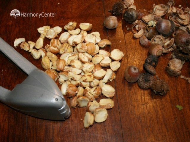 - Verwijder de harde schil van de eikeltjes en het bruine vlies wat er omheen zit. Dit gaat het beste met een mesje. Of een andere methode is kokend water over de gepelde eikeltjes te gieten en dan laat het velletje makkelijker los.