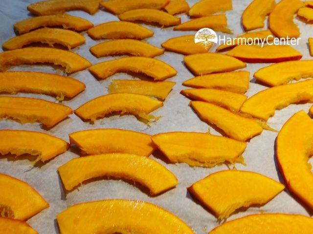 Pompoen vind ik een hele dankbare groente. Ik verwerk ze in allerlei gerechten. Een van de laatste experimenten waren de pompoenchips. Makkelijk, gezond en lekker vrolijk!
