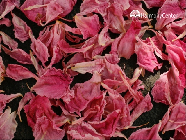 - Oogst voorzichtig de blaadjes van de rozen.