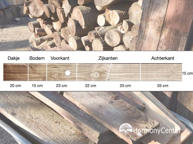 Vandaag heb ik uit wat oude planken 5 huisjes voor koolmeesjes gemaakt, met de volgende afmetingen uit een plank: