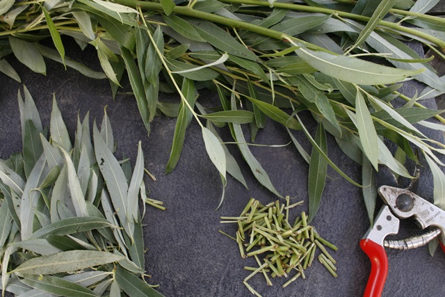 Je gebruikt van de wilg de groene eerstejaars takken.